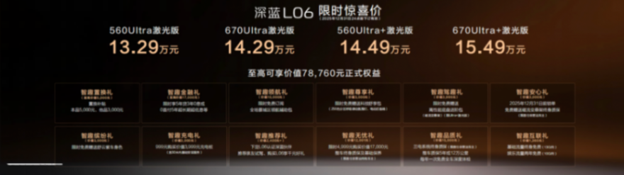 2025年11月18日,“長續航磁流變激光智能轎跑”價格及權益發布。新車共推出四款配置車型,售價13.29萬元起,同時推出至高價值78760元的購車權益,并承諾將為11月30日前鎖單,且非客戶原因導致跨年交付的用戶兜底全部購置稅,以極具誠意的姿態登陸15萬級純電市場。
